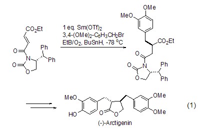 As a free radical initiator, triethylboron can be used for the enantioselective synthesis of the natural product butyrolactone (Formula 1)[1]. The reaction begins with Lewis-induced radical addition, leading to the final product.