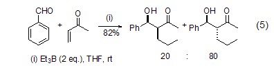 Triethylboron can also be substituted Metal reagents realize the tandem Michael-aldol reaction and synthesize α-alkyl-β-hydroxyketone derivatives (Formula 5) with high yields[4].