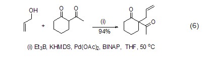 Reactive submersible ions catalyzed by palladium reagents In the allylation reaction between methyl compounds and inactive allyl alcohol, triethylboron can play a very good role in promoting the C-O bond of allyl alcohol (formula 6)[5].